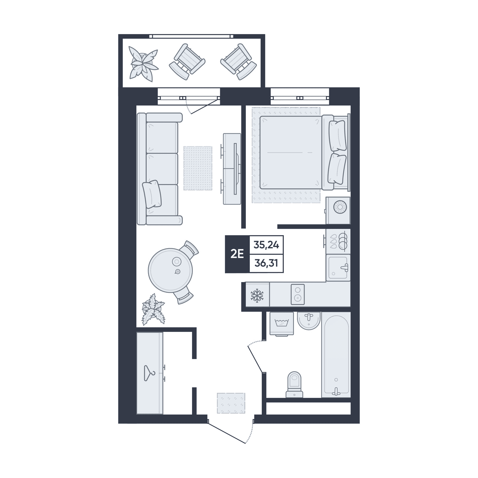 Продуманное пространство, где отдельная спальная зона органично сочетается с просторной кухней‑гостиной. Каждый уголок создан для комфорта и свободы. Здесь уют личного отдыха гармонично переплетается с энергией встреч и творчества.
